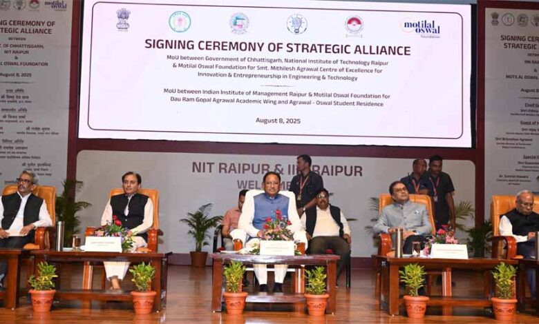 छत्तीसगढ़ शासन, आईआईएम, एनआईटी और मोतीलाल ओसवाल फाउंडेशन के त्रिपक्षीय एमओयू पर हस्ताक्षर