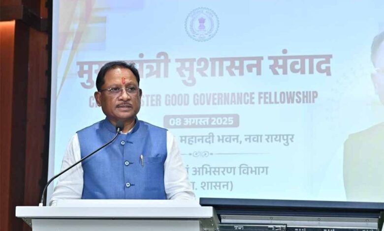 मुख्यमंत्री श्री साय आज मंत्रालय महानदी भवन के पंचम तल स्थित नवनिर्मित सभागार में आयोजित ‘मुख्यमंत्री सुशासन संवाद’ कार्यक्रम को संबोधित कर रहे थे। यह आयोजन IIM रायपुर में अध्ययनरत मुख्यमंत्री सुशासन फेलोशिप के विद्यार्थियों के साथ हुआ, जिसमें मुख्यमंत्री ने आत्मीय संवाद करते हुए उन्हें सुशासन की बारीकियों से अवगत कराया और उनके प्रश्नों के प्रेरणादायक उत्तर दिए।