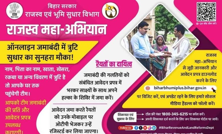 इस राजस्व महाअभियान के तहत राजस्व कर्मचारी घर-घर जाकर जमाबंदी पत्र देंगे। अगर किसी कागजात में कोई कमी या गलती मिलती है, तो वहीं मौके पर संशोधन का आवेदन लिया जाएगा। बंटवारा और उत्तराधिकार दाखिल-खारिज के फॉर्म भी गांव में ही उपलब्ध कराए जाएंगे।