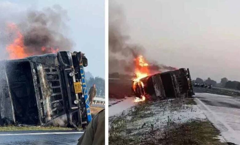 मथुरा में दर्दनाक हादसा: केमिकल टैंकर पलटने से धधकी आग, मचा हड़कंप