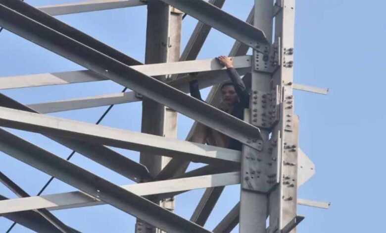 हाईटेंशन लाइन के टावर पर चढ़ी युवती, प्रेमी से नाराज़गी में घंटों किया ड्रामा
