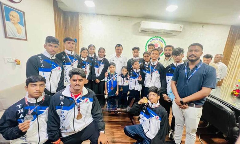 थाईबॉक्सिंग राष्ट्रीय स्पर्घा विजेता खिलाड़ियों को मंत्री लखन लाल देवांगन जी ने दिये आशीर्वाद