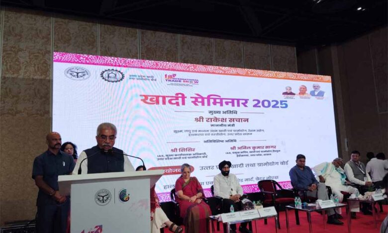 केंद्र सरकार द्वारा जीएसटी स्लैब में कटौती के बाद उत्तर प्रदेश सरकार ने उद्यमियों को बड़ा तोहफा दिया है। खादी एवं ग्रामोद्योग मंत्री राकेश सचान ने घोषणा की कि प्रदेश के सभी 75 जिलों में 9 से 16 अक्टूबर तक आठ दिवसीय ट्रेड शो आयोजित किए जाएंगे। इन कार्यक्रमों में उद्यमियों को निःशुल्क स्टॉल उपलब्ध कराए जाएंगे ताकि वे अपने उत्पादों का व्यापक प्रचार-प्रसार कर सकें। यह घोषणा मंत्री ने यूपी इंटरनेशनल ट्रेड शो (UPITS) के चौथे दिन “खादी फॉर नेशन, खादी फॉर फैशन” विषय पर आयोजित सेमिनार में की।