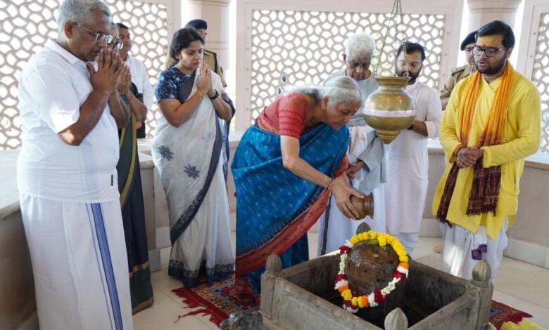मंत्री निर्मला सीतारमण ने श्रीराम दरबार, मां दुर्गा और महादेव के किए दर्शन, कुबेर टीला पर किया अभिषेक
