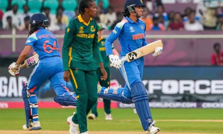भारतीय महिला और दक्षिण अफ्रीका महिला टीम गुरुवार को महिला विश्व कप के 10वें मुकाबले में आमने-सामने हैं। भारतीय महिला टीम ने पहले बल्लेबाजी करते हुए 50 ओवर में सभी विकेट खोकर 251 रन बनाए हैं। बीच के ओवरों में लगातार विकेट गंवा रही भारतीय टीम की पारी को ऋचा घोष ने संभाला और टीम को 200 के पार पहुंचाने में अहम भूमिका निभाई। ऋचा घोष ने 94 रन की पारी खेली। वहीं स्नेह राणा के साथ मिलकर उन्होंने आठवें विकेट के लिए 88 रन जोड़े। दक्षिण अफ्रीका की ओर से ट्रायन ने तीन विकेट चटकाए।