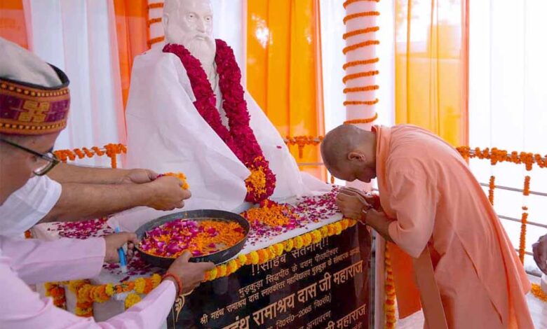सीएम योगी परमपूज्य ब्रह्मलीन श्री महंथ रामाश्रय दास जी की प्रतिमा का किया अनावरण