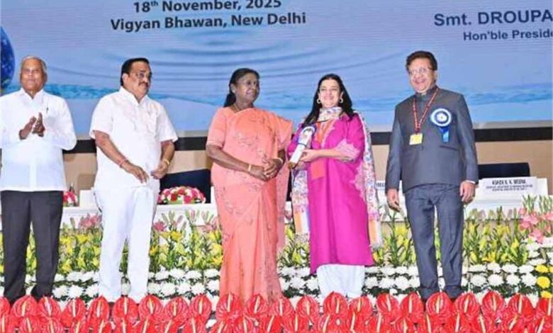 6वें राष्ट्रीय जल पुरस्कार समारोह में हरियाणा को मिला तीसरा स्थान, राष्ट्रपति ने श्रुति चौधरी को किया सम्मानित