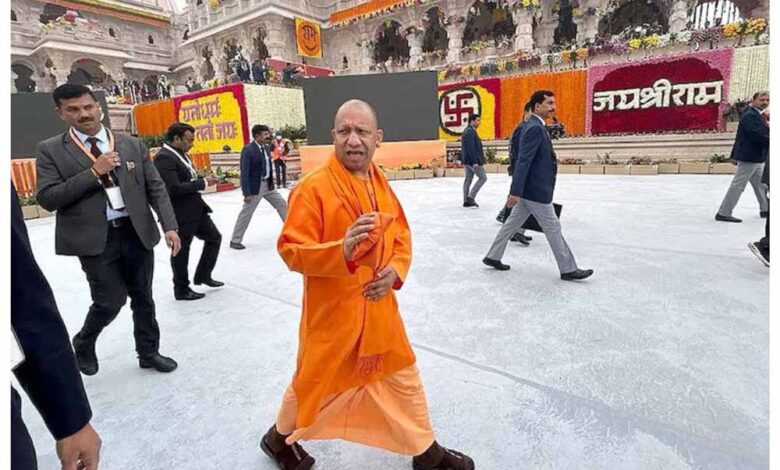 ध्वजारोहण कार्यक्रम की तैयारियों का निरीक्षण करने अयोध्या पहुंचे योगी आदित्यनाथ
