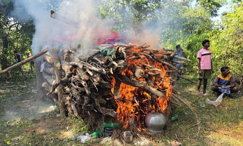 छत्तीसगढ़–आंध्रप्रदेश सीमा पर 18 नवंबर की सुबह हुई बड़ी मुठभेड़ में ढेर किए गए कुख्यात नक्सली माडवी हिड़मा और उसकी पत्नी राजे का रविवार को सुकमा जिले के पूवर्ती गांव में अंतिम संस्कार कर दिया गया। सुरक्षा एजेंसियों की कड़ी निगरानी के बीच हिड़मा के पैतृक गांव में हजारों की भीड़ उमड़ पड़ी।