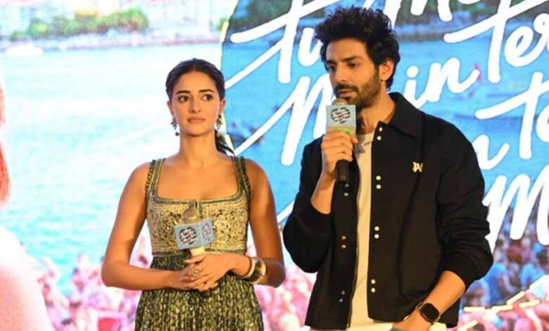 अभिनेता कार्तिक आर्यन और अनन्या पांडे की बहुप्रतीक्षित रोमांटिक कॉमेडी फिल्म ‘तू मेरी मैं तेरा, मैं तेरा तू मेरी’ एक बार फिर सुर्खियों में है। धर्मा प्रोडक्शन और नमः पिक्चर्स के बैनर तले बनी इस फिल्म का बहुचर्चित टाइटल ट्रैक जयपुर में आयोजित एक प्रेस कॉन्फ्रेंस के दौरान लॉन्च किया गया। इस मौके पर फिल्म की मुख्य जोड़ी कार्तिक और अनन्या ने अपनी बेहतरीन मौजूदगी से कार्यक्रम को यादगार बना दिया।