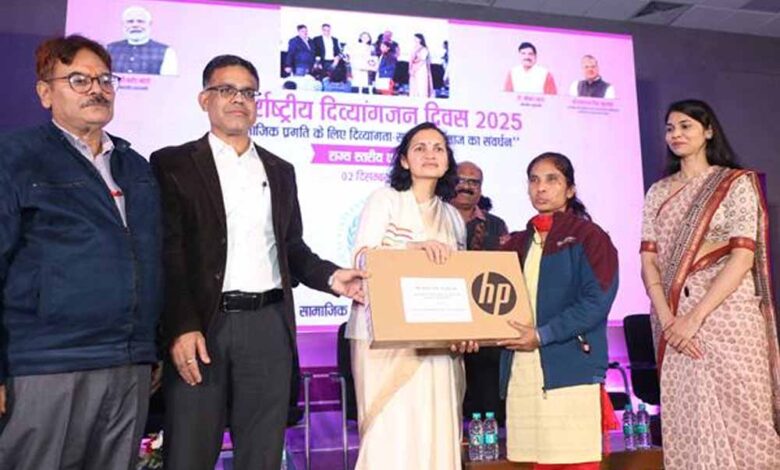 विश्व दिव्यांग दिवस के अवसर पर प्रमुख सचिव सामाजिक न्याय एवं दिव्यांगजन सशक्तिकरण श्रीमती सोनाली वायंगणकर के मुख्य आतिथ्य में संचालनालय सभागार में कार्यक्रम का आयोजन किया गया, जिसमें दिव्यांगजनों के अधिकार, समानता और सशक्तिकरण के लिए विभाग की प्रतिबद्धता को रेखांकित किया गया। इस अवसर पर आयुक्त नि:शक्तजन डॉ. अजय खेमरिया भी उपस्थित थे।