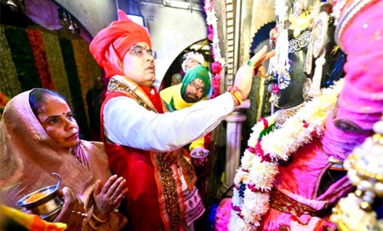 मुख्यमंत्री भजनलाल शर्मा ने राज्य सरकार के दो वर्ष का कार्यकाल पूर्ण होने के उपलक्ष्य में सोमवार को डीग जिले के पूंछरी का लौठा स्थित मुकुट मुखारविंद मन्दिर में सपत्नीक श्री गिरिराज जी की विधिवत पूजा-अर्चना की। उन्होंने प्रदेश की खुशहाली और आमजन के लिए सुख-समृद्धि की प्रार्थना की।