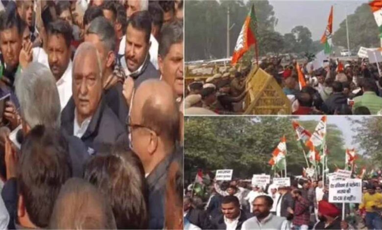 हरियाणा में सियासी संग्राम: पंचकूला में BJP दफ्तर का कांग्रेस ने किया घेराव, पुलिस ने बैरिकेड लगाकर रोका
