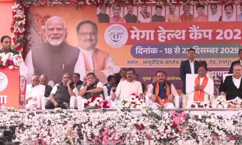 आयुर्वेदिक कॉलेज में आयोजित मेगा हेल्थ कैंप के उद्घघाटन समारोह में मुख्यमंत्री विष्णु देव साय और स्वास्थ्य मंत्री श्याम बिहारी जायसवाल के अलावा मंत्री केदार कश्यप, मंत्री गुरु खुशवंत साहब सहित कई विधायक और जनप्रतिनिधि शामिल हुए.