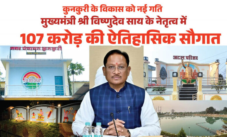 रायपुर : मुख्यमंत्री विष्णुदेव साय ने कुनकुरी नगर को दी 107 करोड़ 32 लाख रुपये की ऐतिहासिक विकास सौगात