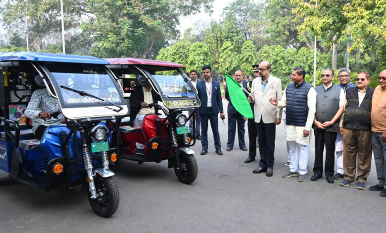 राज्यपाल रमेन डेका ने आज लोकभवन में सरस्वती शिक्षा संस्थान छत्तीसगढ़ रायपुर को चार ई-रिक्शे प्रदान किए। उन्होंने लोकभवन परिसर में आयोजित कार्यक्रम में अपने स्वेच्छानुदान मद से चार ई-रिक्शे की चाबी वाहन चालकों को सौंपी और हरी झंडी दिखाकर वाहनों को रवाना किया। इन वाहनों का उपयोग विभिन्न सरस्वती शिक्षा संस्थानों में किया जाएगा। इस अवसर पर डॉ. पुर्णेन्द्रु सक्सेना सहित संस्थान के पदाधिकारी उपस्थित थे।