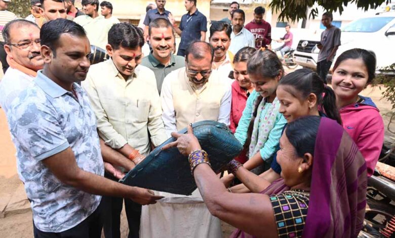 घर-घर अन्न दान लेकर मंत्री श्री टंक राम वर्मा ने निभाई छेरछेरा की परम्परा
