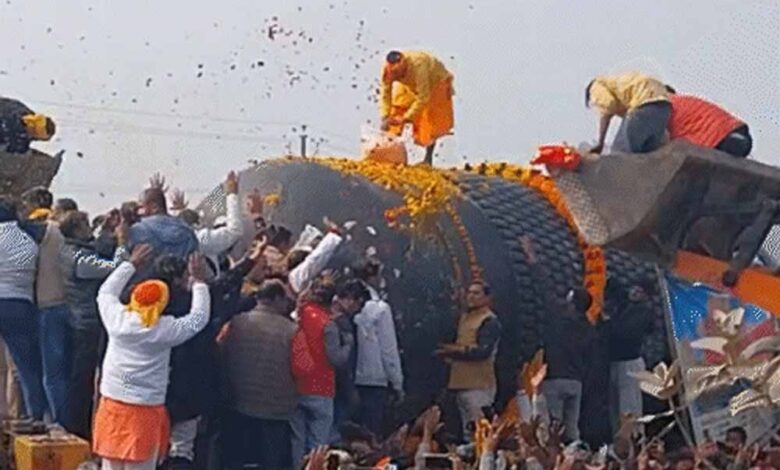 इधर, सोमवार को विराट शिवलिंग जैसे ही पूर्वी चंपारण की धरती पर पहुंचा, श्रद्धालुओं की भीड़ उमड़ पड़ी। स्थापना से 12 दिन पहले श्रद्धालुओं ने शिवलिंग का भव्य स्वागत किया। शिवलिंग को लेकर सबसे बड़ी चुनौती डुमरियाघाट थाना क्षेत्रके रामपुर-खजुरिया ओवरब्रिज को पार करना रहा। इसे पार करने में पांच घंटे लग गए। कड़ाके की ठंड के बावजूद हजारों की संख्या में भक्त घंटों पहले से सड़क किनारे खड़े होकर शिवलिंग के स्वागत का इंतजार करते नजर आए। डुमरिया घाट पुल पार करते ही चारों ओर हर-हर महादेव के नारे गूंजे। जगह-जगह भव्य स्वागत द्वार बनाए गए थे, फूल-मालाओं और रोशनी से पूरे रास्ते को सजाया गया था। श्रद्धालुओं ने ढोल-नगाड़ों और शंखनाद के साथ भगवान शिव का अभिनंदन किया। कई स्थानों पर शिवलिंग को कुछ देर के लिए रोका गया, जहां भक्तों ने विधिवत पूजा-अर्चना की और जयकारे लगाए।