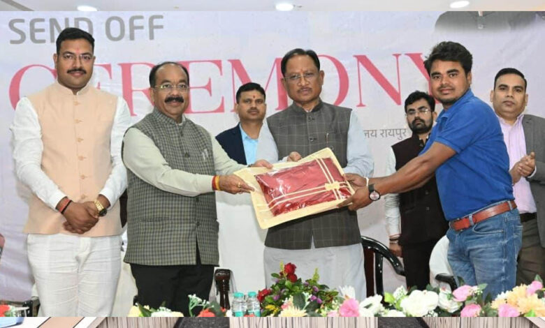मुख्यमंत्री विष्णु देव साय ने कहा कि स्वामी विवेकानंद ने अल्पायु में ही संपूर्ण विश्व को भारत की सनातन संस्कृति, अध्यात्म और दर्शन से परिचित कराते हुए देश का सम्मान बढ़ाया था। मुख्यमंत्री विष्णुदेव साय ने आज शाम राजधानी रायपुर स्थित मुख्यमंत्री निवास कार्यालय में आयोजित सेंड ऑफ सेरेमनी समारोह में युवाओं को संबोधित कर रहे थे। इस कार्यक्रम का आयोजन खेल एवं युवा कल्याण विभाग द्वारा किया गया।