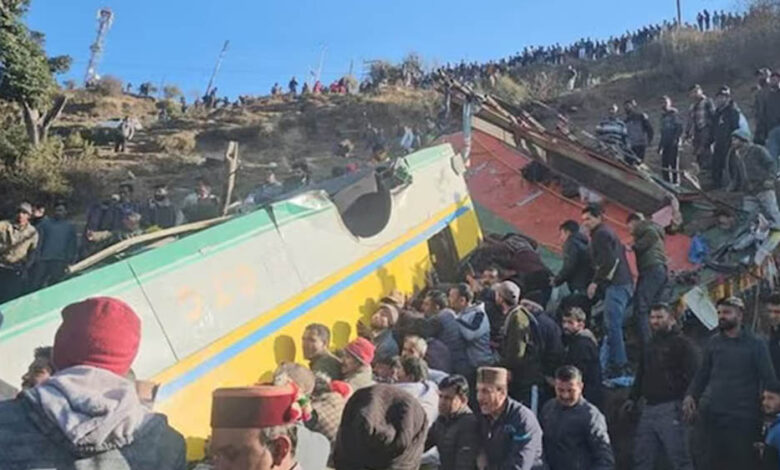 हिमाचल के हरिपुरधार में खाई में गिरी प्राइवेट बस, 7 की मौत, 50 घायल
