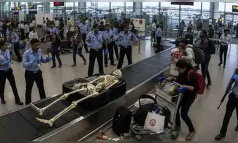 दिल्ली एयरपोर्ट के टर्मिनल 3 पर उस समय अफरा-तफरी मच गई, जब जांच के दौरान मानव कंकाल जैसी दिखने वाली वस्तु बरामद हुई। दिल्ली पुलिस ने कंकाल को फोरेंसिक जांच के लिए भेज दिया है। शुरुआती जांच में पता चला कि यह एक डेमो कंकाल है, जिसका उपयोग मेडिकल छात्र करते हैं।