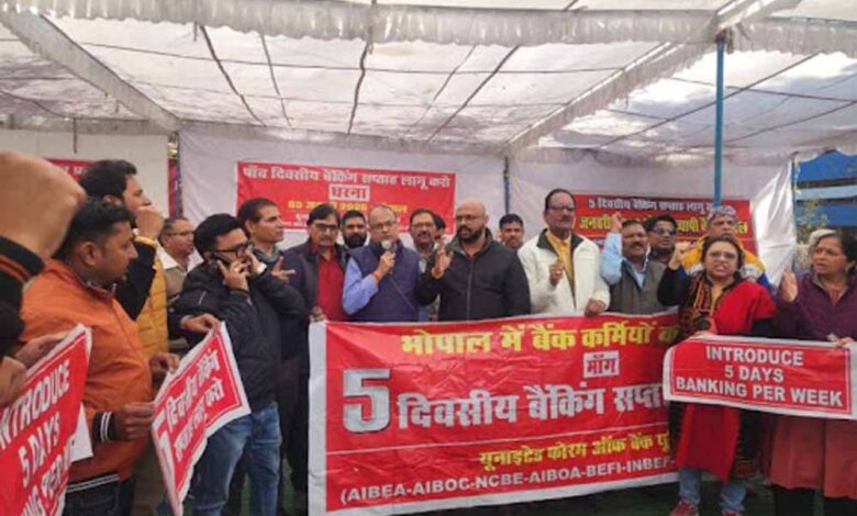 लाखों बैंक कर्मचारी ‘फाइव डे वीक’ के लिए सड़कों उतरे, 7 हजार से ज्यादा शाखाओं में हड़ताल के चलते तालाबंदी