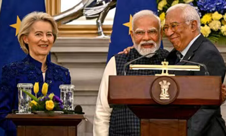 भारत और यूरोपीय संघ (EU) के बीच मुक्त व्यापार समझौते (FTA) की घोषणा के साथ ही द्विपक्षीय संबंधों में एक नए ऐतिहासिक अध्याय की शुरुआत हो गई है। इस मौके पर यूरोपीय परिषद के अध्यक्ष एंटोनियो कोस्टा और प्रधानमंत्री नरेंद्र मोदी के बीच न केवल कूटनीतिक बल्कि व्यक्तिगत और भावनात्मक रिश्ते भी देखने को मिले। इस मौके पर यूरोपीय आयोग की अध्यक्ष उर्सुला वॉन डेर लेयेन भी मौजूद थीं।