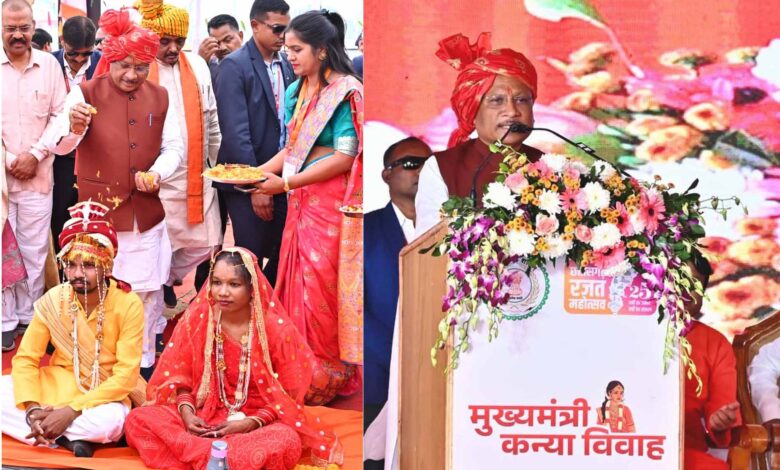मुख्यमंत्री विष्णु देव साय ने कहा कि मुख्यमंत्री कन्या विवाह योजना छत्तीसगढ़ में सामाजिक समरसता, अंत्योदय और संवेदनशील शासन की भावना को साकार करने वाली ऐतिहासिक पहल है। उन्होंने कहा कि एक समय गरीब परिवारों के लिए बेटी का विवाह बड़ी चिंता का विषय होता था, जिसे इस योजना ने सम्मान और भरोसे में बदल दिया है। मुख्यमंत्री साय राजधानी रायपुर के साइंस कॉलेज मैदान में आयोजित राज्य स्तरीय सामूहिक विवाह कार्यक्रम को संबोधित कर रहे थे।