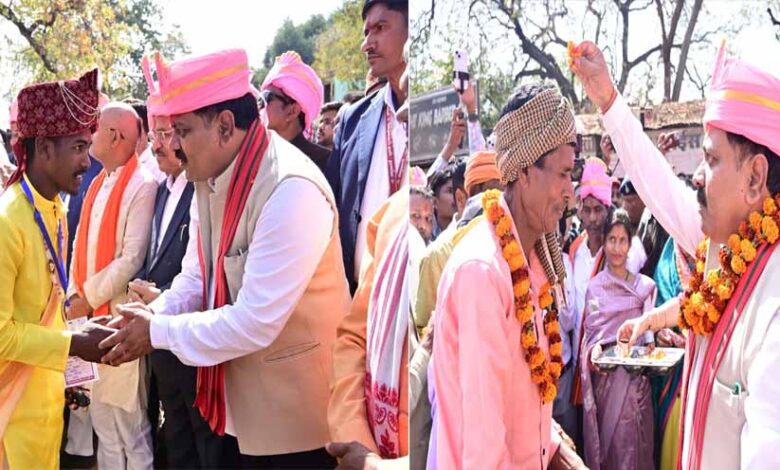 सरदार पटेल मैदान में आयोजित इस समारोह में उपमुख्यमंत्री विजय शर्मा शामिल वधुओं के परिजन बनकर शामिल हुए। इस अवसर में उन्होंने बारात का स्वागत करने के साथ सभी को परघाते हुए समधी की तरह सभी का अभिवादन किया। वरों एवं उनके परिजनों का फूल माला के साथ स्वागत करते हुए सभी का गले लगाकर अभिनंदन किया। उन्होंने परिणय सूत्र में बंधकर नए जीवन की शुरुआत करने वाले सभी नवदंपतियों को बधाई एवं शुभकामनाएं दीं। कार्यक्रम में पंडित द्वारा वर-वधुओं को सात वचनों का संकल्प दिलाया गया, जिसके साथ ही विवाह की रस्में संपन्न हुईं। उपमुख्यमंत्री शर्मा ने मंच पर पहुंचकर सभी नवदंपतियों को आशीर्वाद प्रदान किया और शासन की ओर से प्रत्येक जोड़े को 35-35 हजार रुपये की सहायता राशि का चेक और सामग्री भेंट किया।