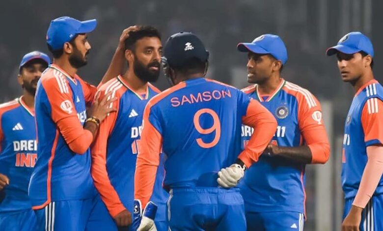 वेस्टइंडीज के खिलाफ भारत की संभावित प्लेइंग 11: संजू सैमसन (विकेटकीपर), अभिषेक शर्मा, ईशान किशन, सूर्यकुमार यादव, हार्दिक पंड्या, तिलक वर्मा, शिवम दुबे, अक्षर पटेल, अर्शदीप सिंह, जसप्रीत बुमराह और वरुण चक्रवर्ती.