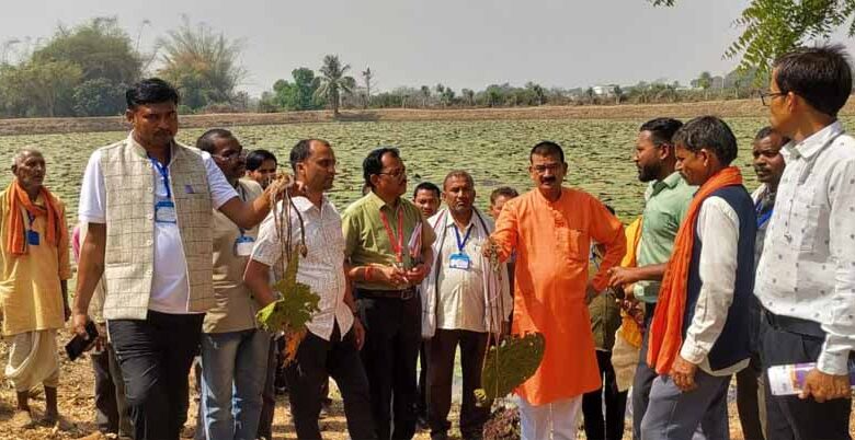 मध्यप्रदेश के किसानों का ग्राम लिंगाडीह आरंग में मखाना खेती भ्रमण एवं प्रशिक्षण संपन्न