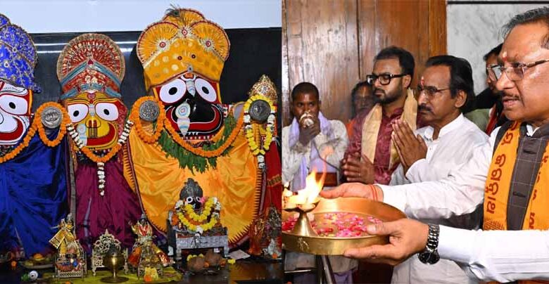मुख्यमंत्री विष्णु देव साय आज राजधानी रायपुर स्थित जगन्नाथ मंदिर पहुँचकर भगवान जगन्नाथ महाप्रभु की भव्य महाआरती में शामिल हुए और विधिवत पूजा-अर्चना कर प्रदेशवासियों के जीवन में सुख, समृद्धि, शांति और निरंतर प्रगति की मंगलकामना की।