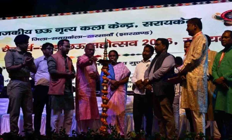झारखंड के सरायकेला जिले के बिरसा स्टेडियम में सरकार के कलासंस्कृति विभाग और जिला प्रशासन के संयुक्त तत्वाधान में चैत्र पर्व सह छऊ महोत्सव 2026 का रंगारंग आगाज हो गया. कार्यक्रम में विश्व प्रसिद्ध छऊ नृत्य के साथ साथ दुसरे राज्यों से आए क्लासिकल नृत्यकार द्वारा नृत्य प्रस्तुत किया गया वहीं इंडियन आयडल फेम प्रियांशु दत्ता द्वारा सुरों की महफिल सजाई गई. कार्यक्रम का उदघाटन मुख्य अतिथि सिंहभूम सांसद जोबा मांझी के द्वारा किया गया. समारोह को संबोधित करते हुए सांसद मांझी ने कहा कि छऊ हमारी संस्कृति है इसका विकास हम सबों का दायित्व है. छऊ के कारण सरायकेला की पहचान विदेशों तक है साथ ही देश के प्रतिष्ठित पुरस्कार पद्मश्री छऊ कलाकारों को मिले हैं यह सरायकेला के लिए गौरव की बात है. राज्य सरकार उससे राजकीय महोत्सव का दर्जा दिया है आने वाले दिनों में कला के साथ कलाकार का विकास होगा. कार्यक्रम का उद्घाटन दीप जलाकर किया गया. कार्यक्रम में जिला परिषद अध्यक्ष सोनाराम बोदरा, सरायकेला नगर पंचायत अध्यक्ष मनोज चौधरी, आदित्यपुर महा पौर संजय सरदार, डीसी नीतीश कुमार सिंह, एसपी मुकेश लुनायत का मोमेंटो और अंग वस्त्र देकर स्वागत किया गया.