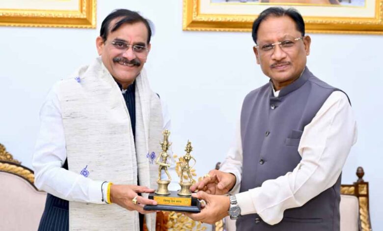 मुख्यमंत्री विष्णु देव साय से आज राजधानी रायपुर स्थित मुख्यमंत्री निवास कार्यालय में लोकसभा सांसद विष्णु दत्त शर्मा ने सौजन्य मुलाकात की। मुख्यमंत्री साय ने शर्मा का आत्मीय स्वागत करते हुए उन्हें शॉल एवं बस्तर आर्ट की आकर्षक प्रतिकृति भेंट कर सम्मानित किया। इस दौरान उनके बीच विभिन्न समसामयिक विषयों पर चर्चा हुई।
