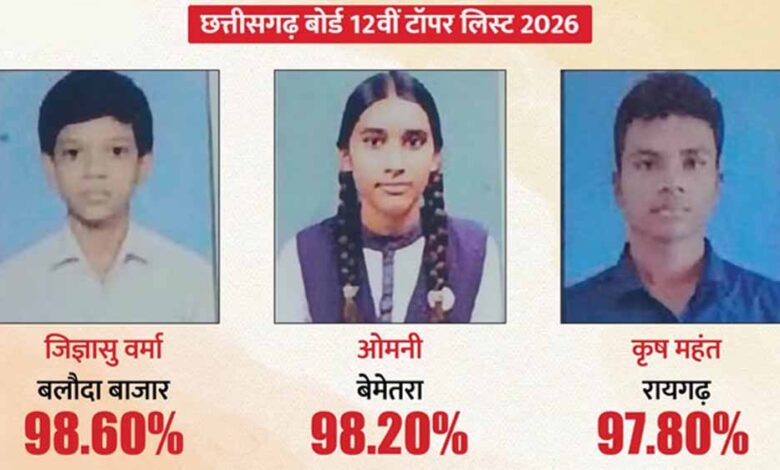 छत्तीसगढ़ माध्यमिक शिक्षा मंडल ने 10वीं और 12वीं बोर्ड के परिणाम घोषित कर दिए हैं। मुख्यमंत्री विष्णुदेव साय ने शिक्षा मंत्री गजेंद्र यादव की मौजूदगी में रिजल्ट जारी किया। इस दौरान टॉपर्स की लिस्ट भी जारी की गई है।