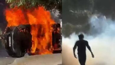 नोएडा में कर्मचारियों का उग्र प्रदर्शन, पुलिस और अन्य वाहनों में तोड़फोड़